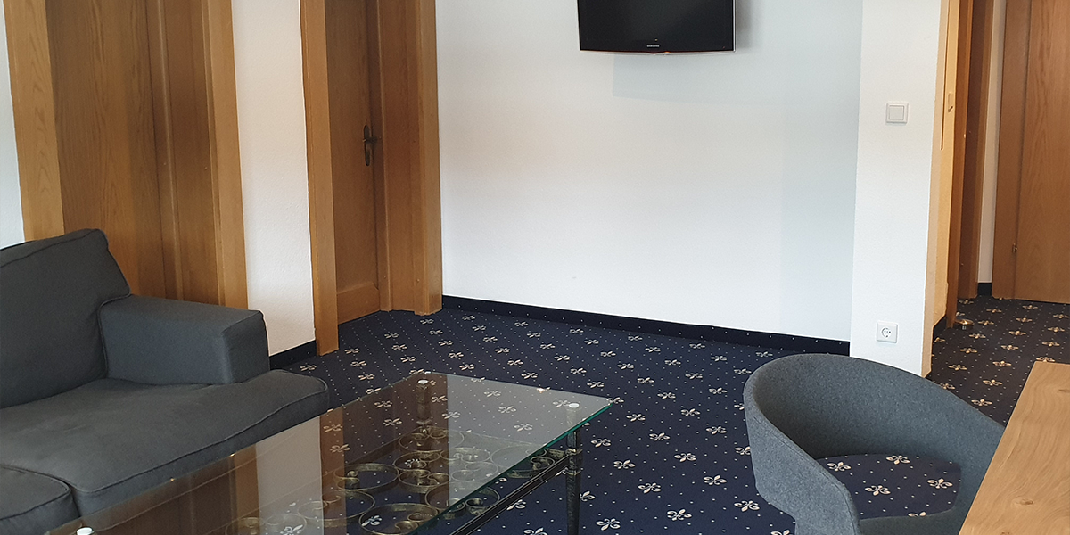 Unsere Familiensuite mit zwei getrennten Schlafzimmern, einem großen Wohnzimmer und einem Badezimmer ist ideal für Familien oder Freunde, manchmal wird sie auch gerne von Schnarchern genützt…